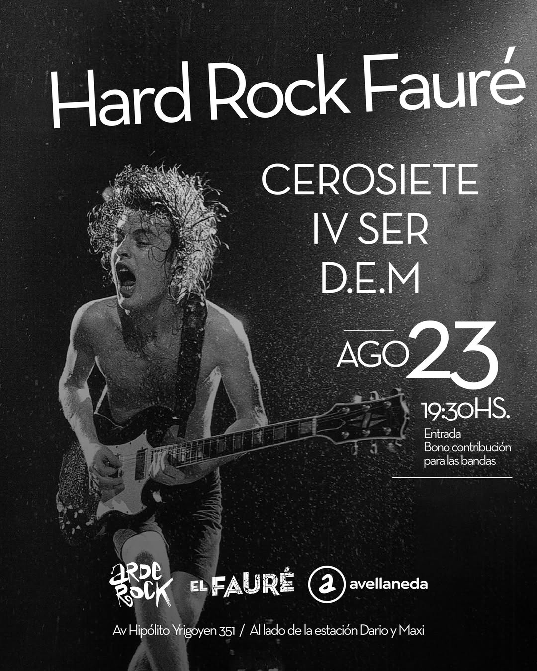 - 🤘🏻 Sábado 23 de agosto – Hard Rock en El Fauré Tocan @cerosiete_rock_duro, @ivserrock y @D.E.M
